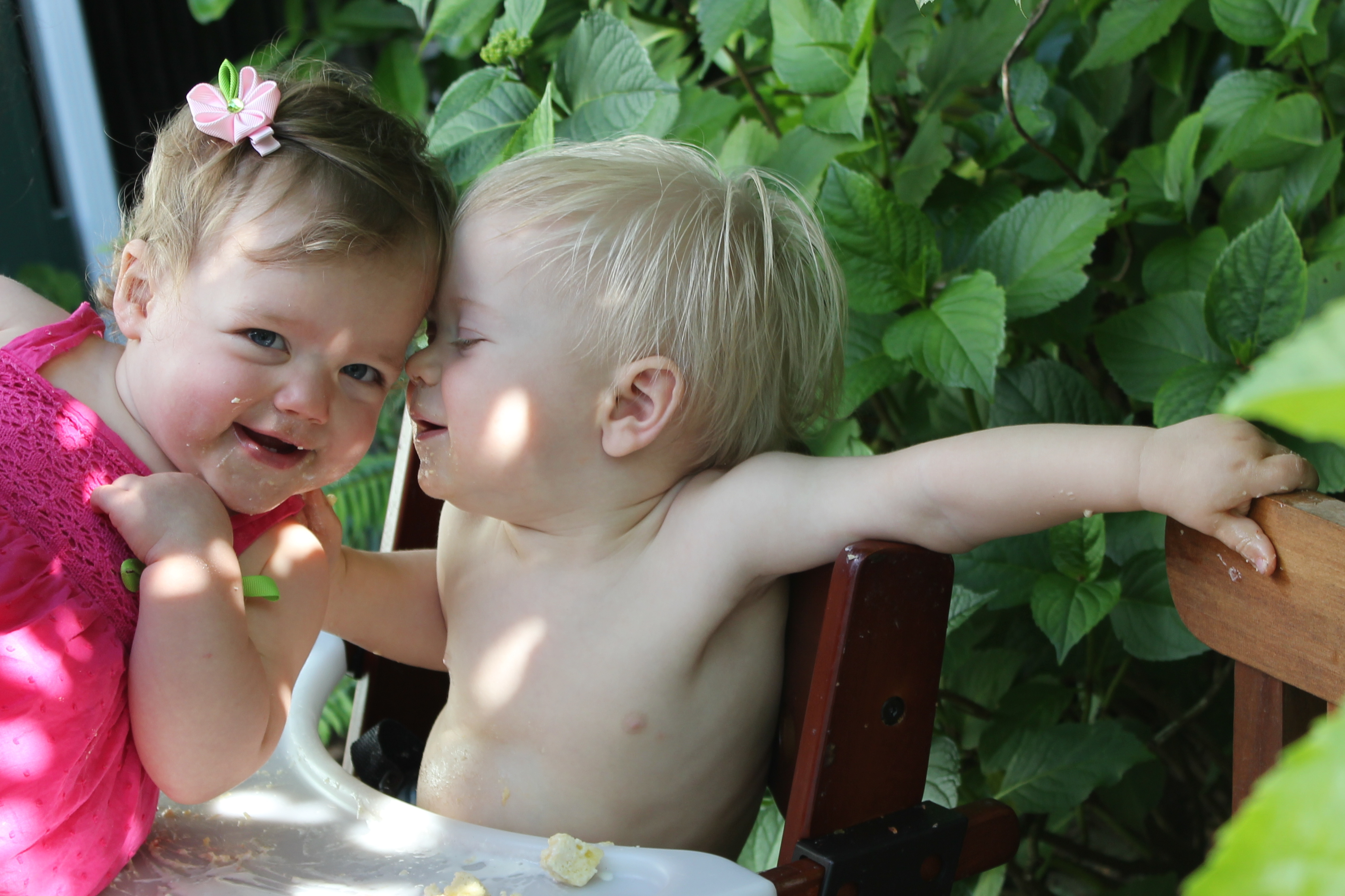 Truly, Alaire & Watt’s made friends from the very first day of daycare, September 7th. At their newest daycare, two stories stick out: Watt’s teacher told Mel that Alaire was back in her crib crying and Watt’s tottled over and began banging on the sleeping room door in concern. And then one day, I dropped Alaire off and Watts was standing on the other side of large bench seat with a gate. He was fussing a bit. I stood Alaire opposite of Watts.  He grabbed both of her hands, held them, then she started to cry too. Standing there, both sobbing, holding hands – I fumbled for my camera but missed the moment.