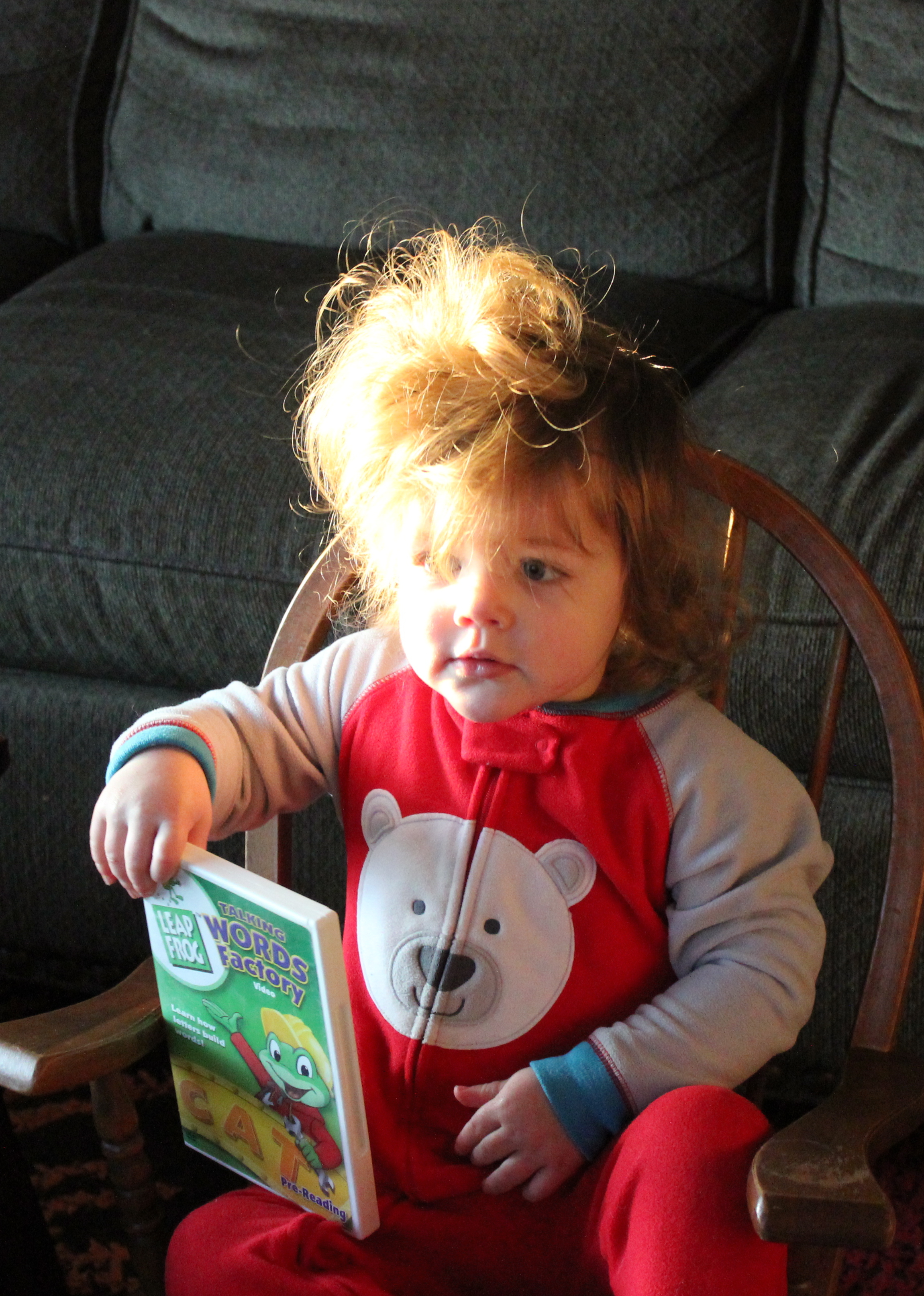 A phenomenon that brings Graham & I endless amusement is the state of Alaire’s unruly, sometimes straight, sometimes curly mob of hair in the morning. This series was from awhile back, but still makes me giggle. I admit, the likely culprit is that after taking out the pigtails or braids at night, we “shake, shake, shake” our heads (then run to the mirror and laugh at the site). I’ll enjoy this while I can; no doubt the day will come when laughing at crazy hair will be a big no-no (I’m imagining the teenage years).
