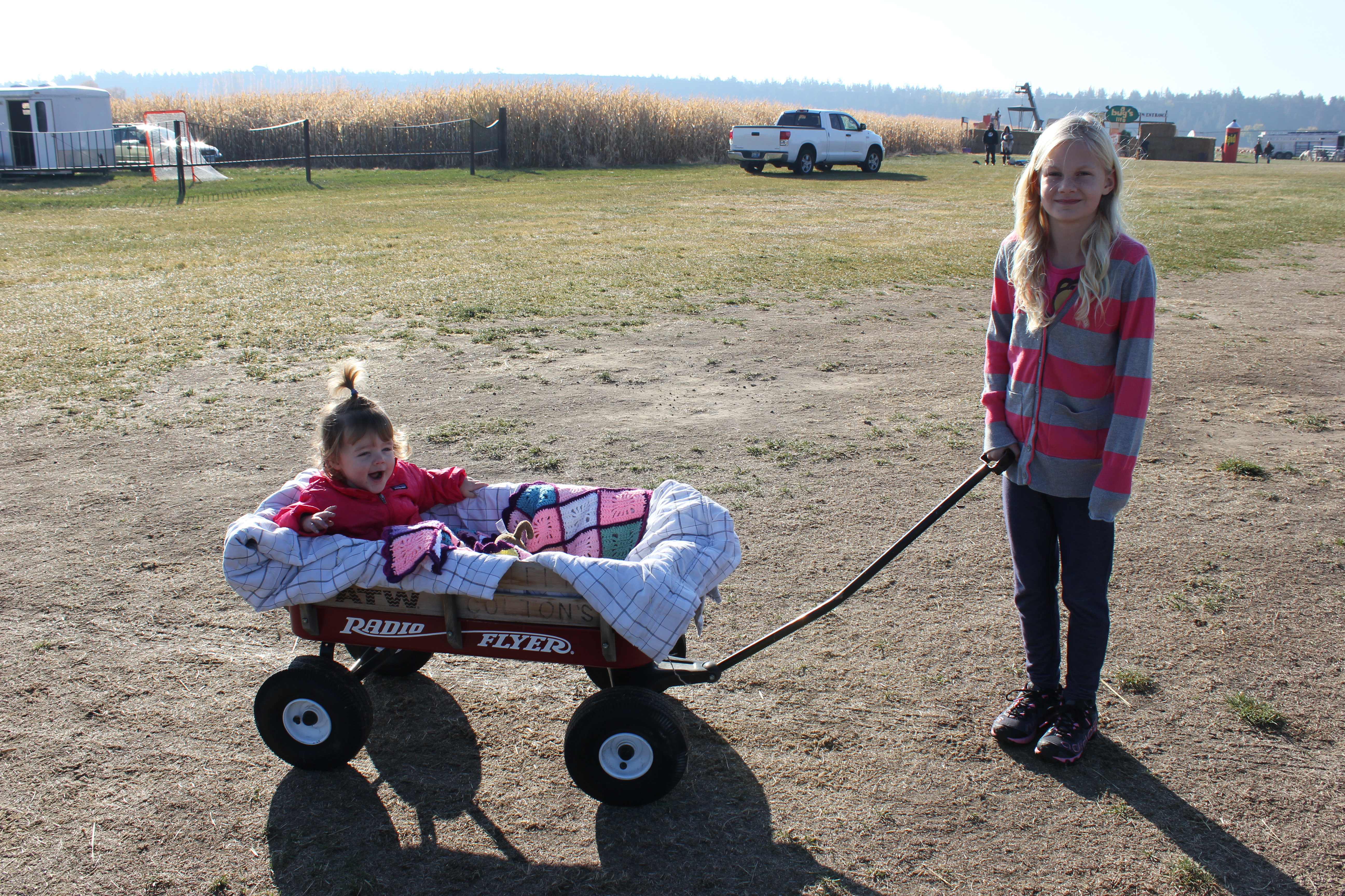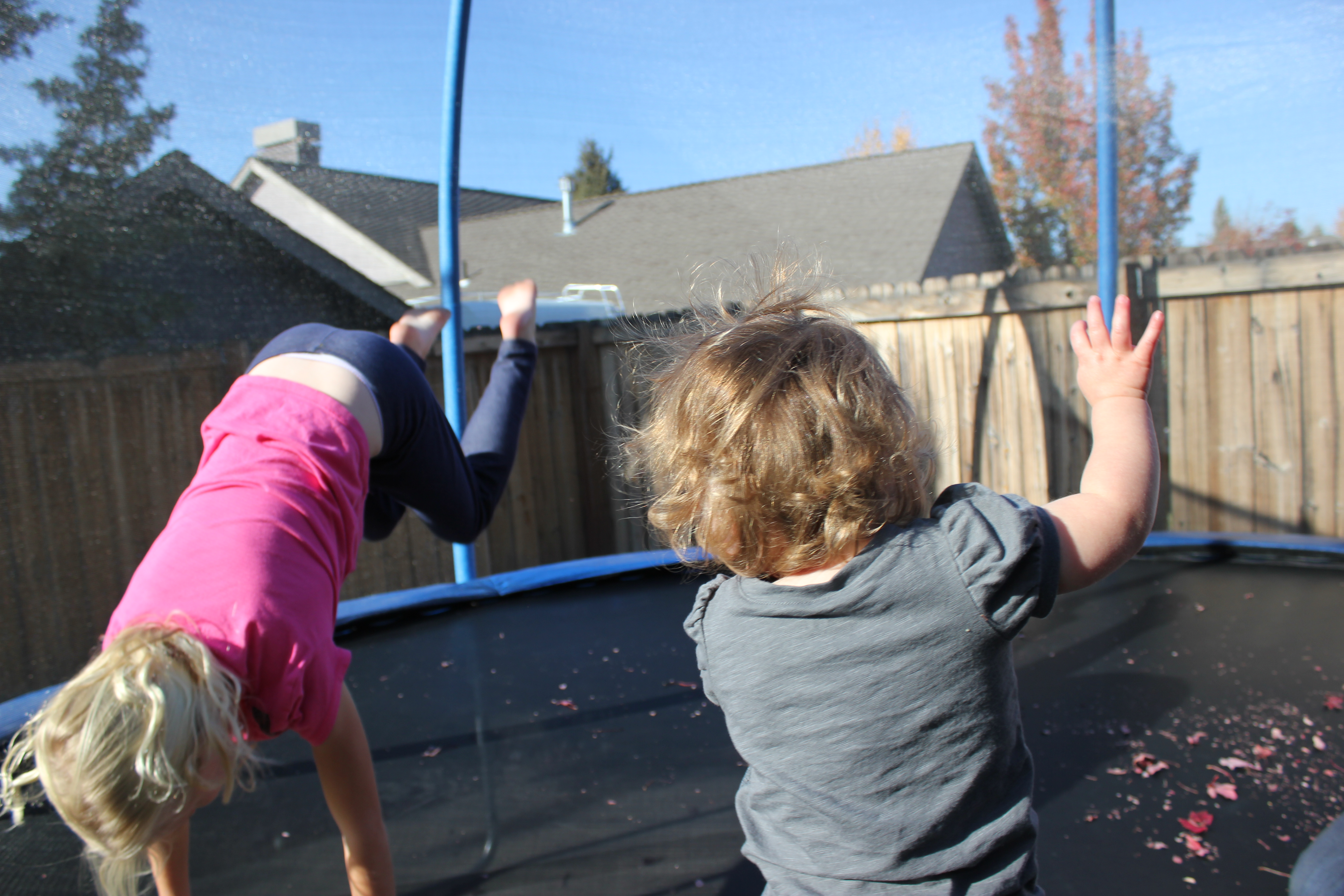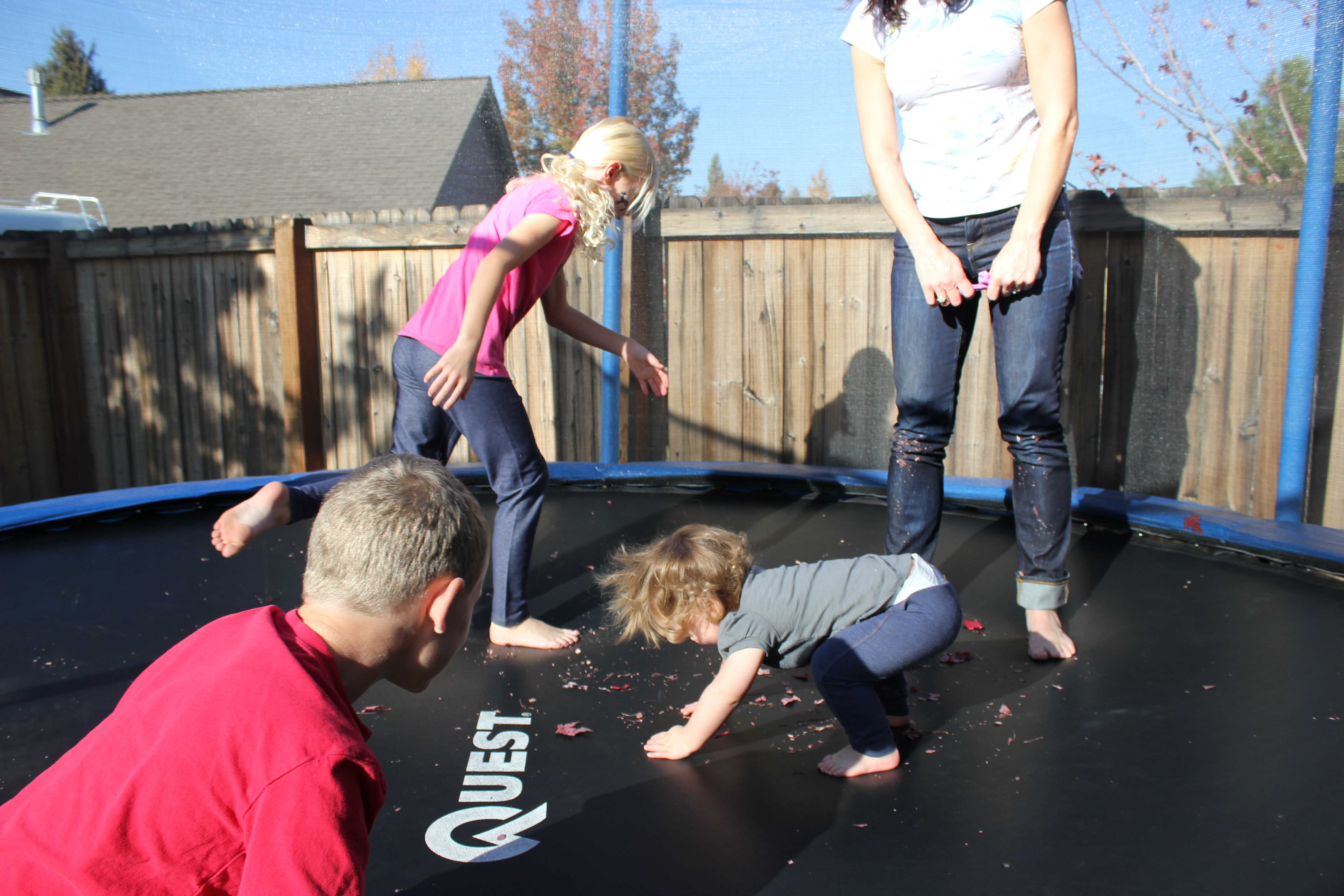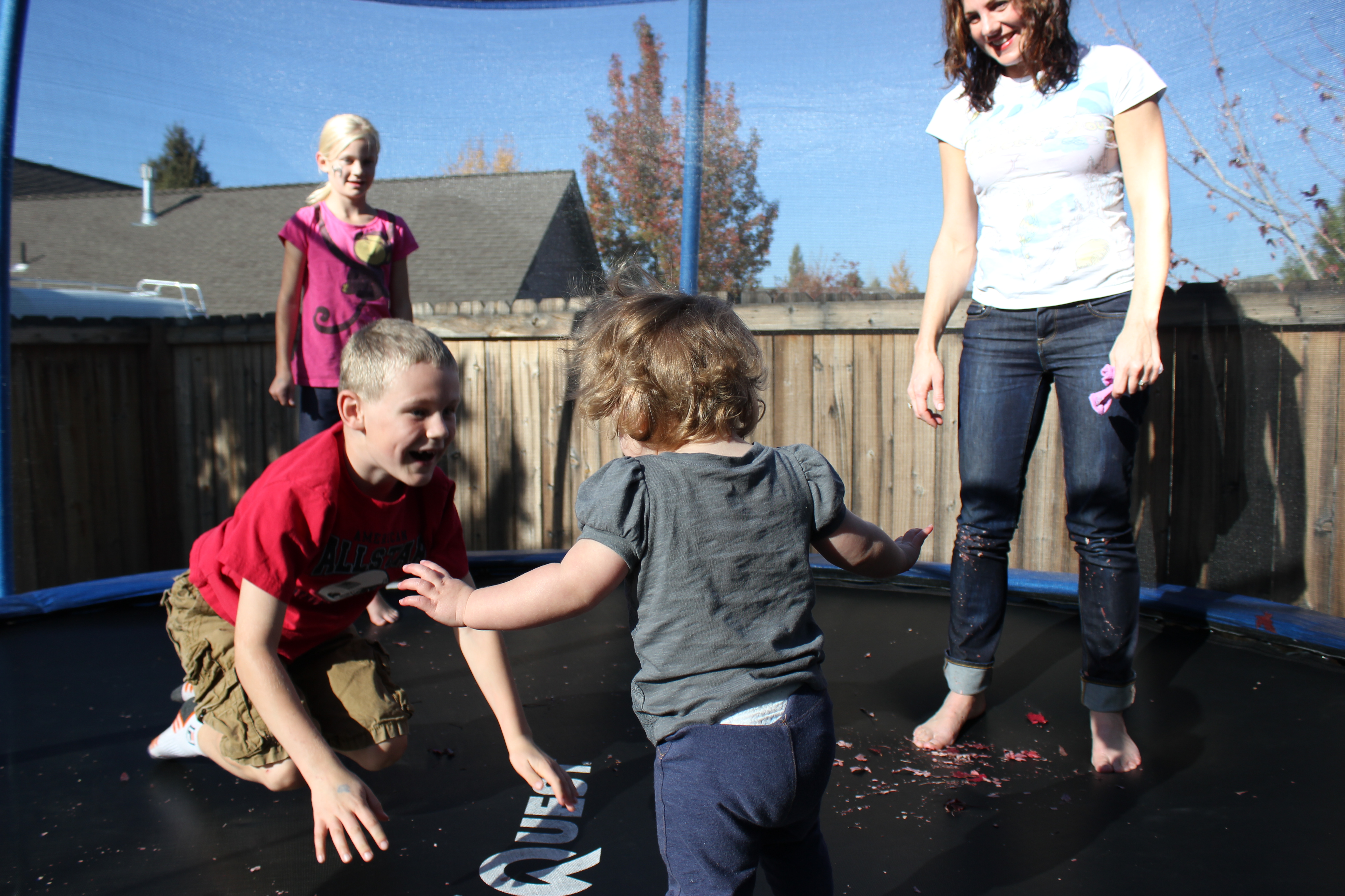 Cousins, Katelyn & Colton, showed Alaire a pretty darn good time! They pulled her in the wagon, on the bean bag and politely jumped at toddler speed so she could enjoy the big trampoline. We love our cousins!