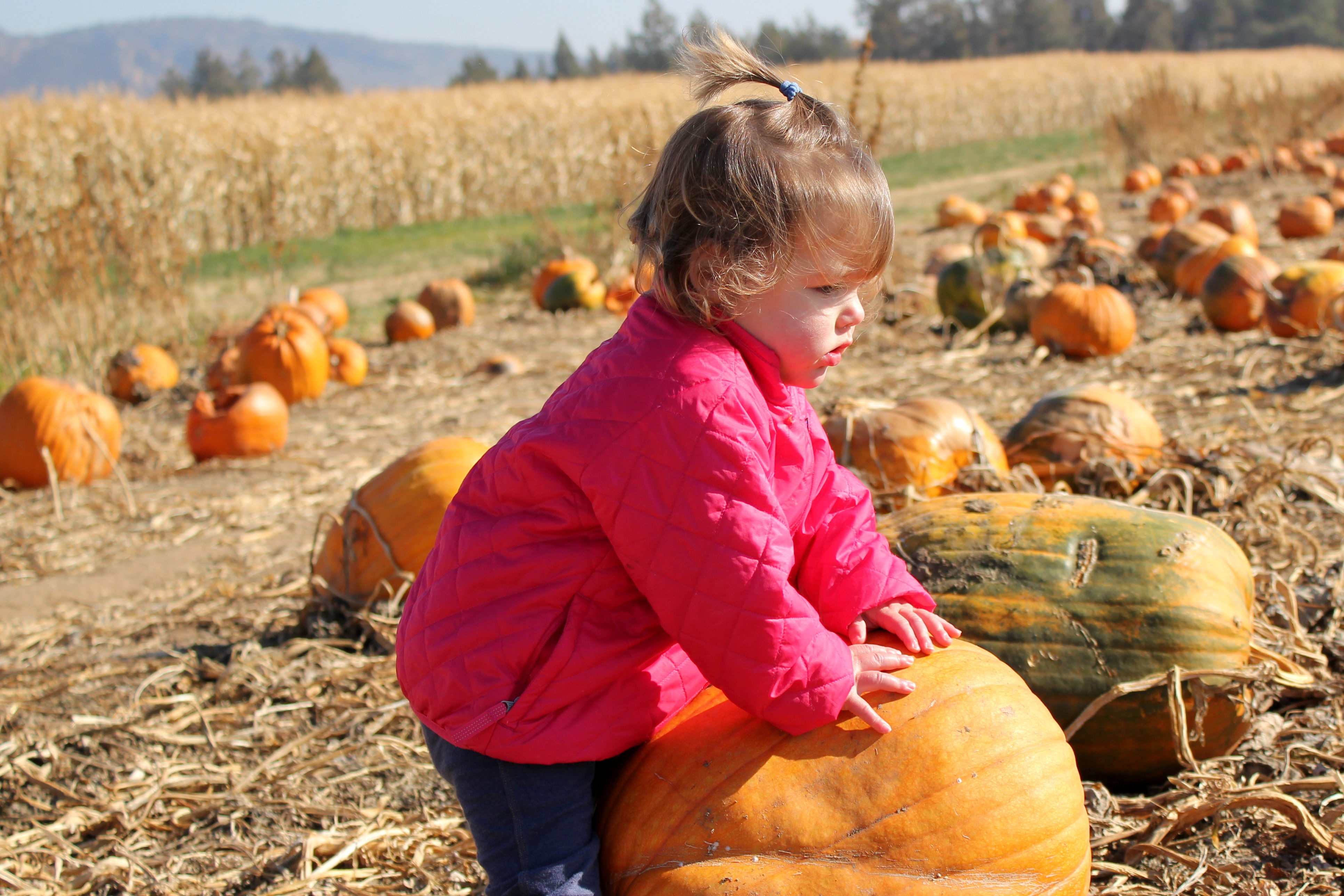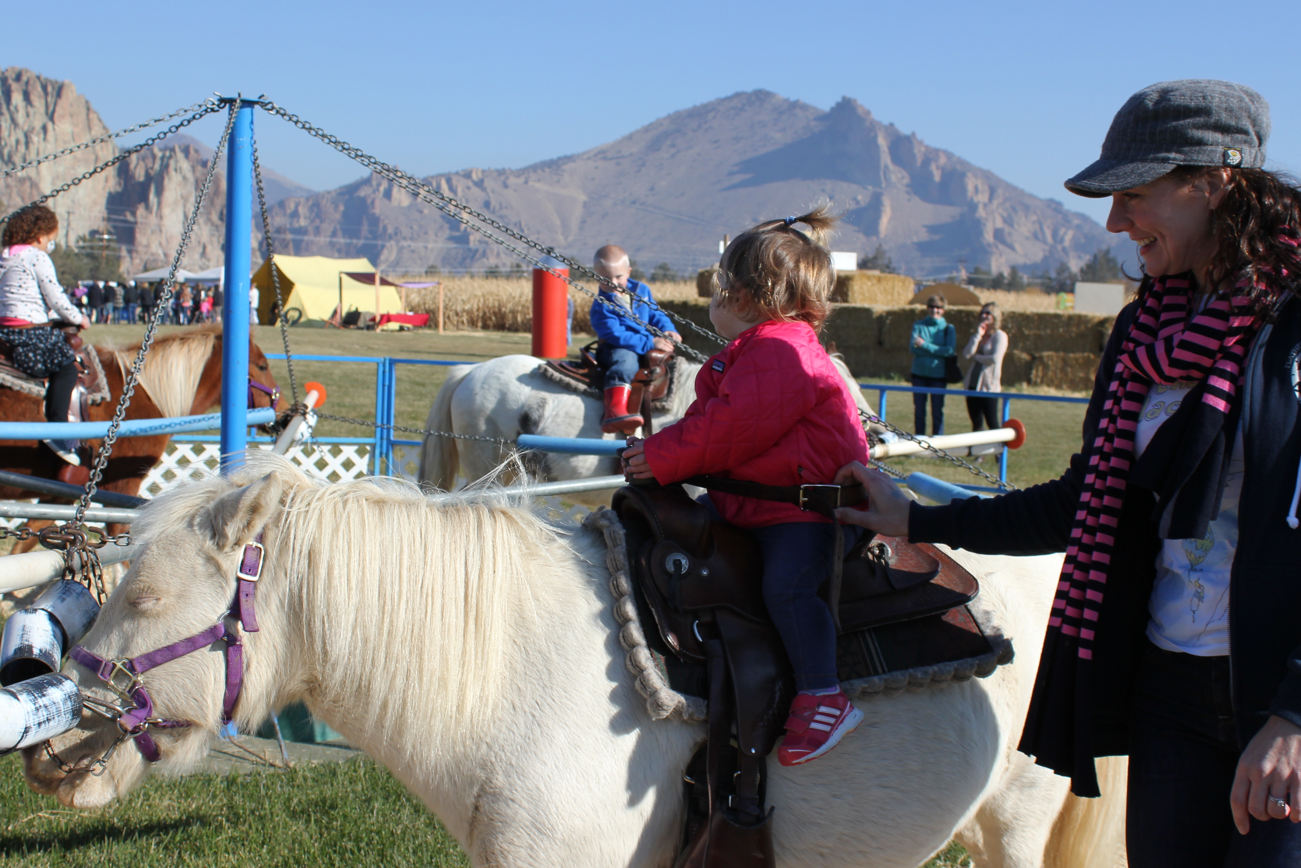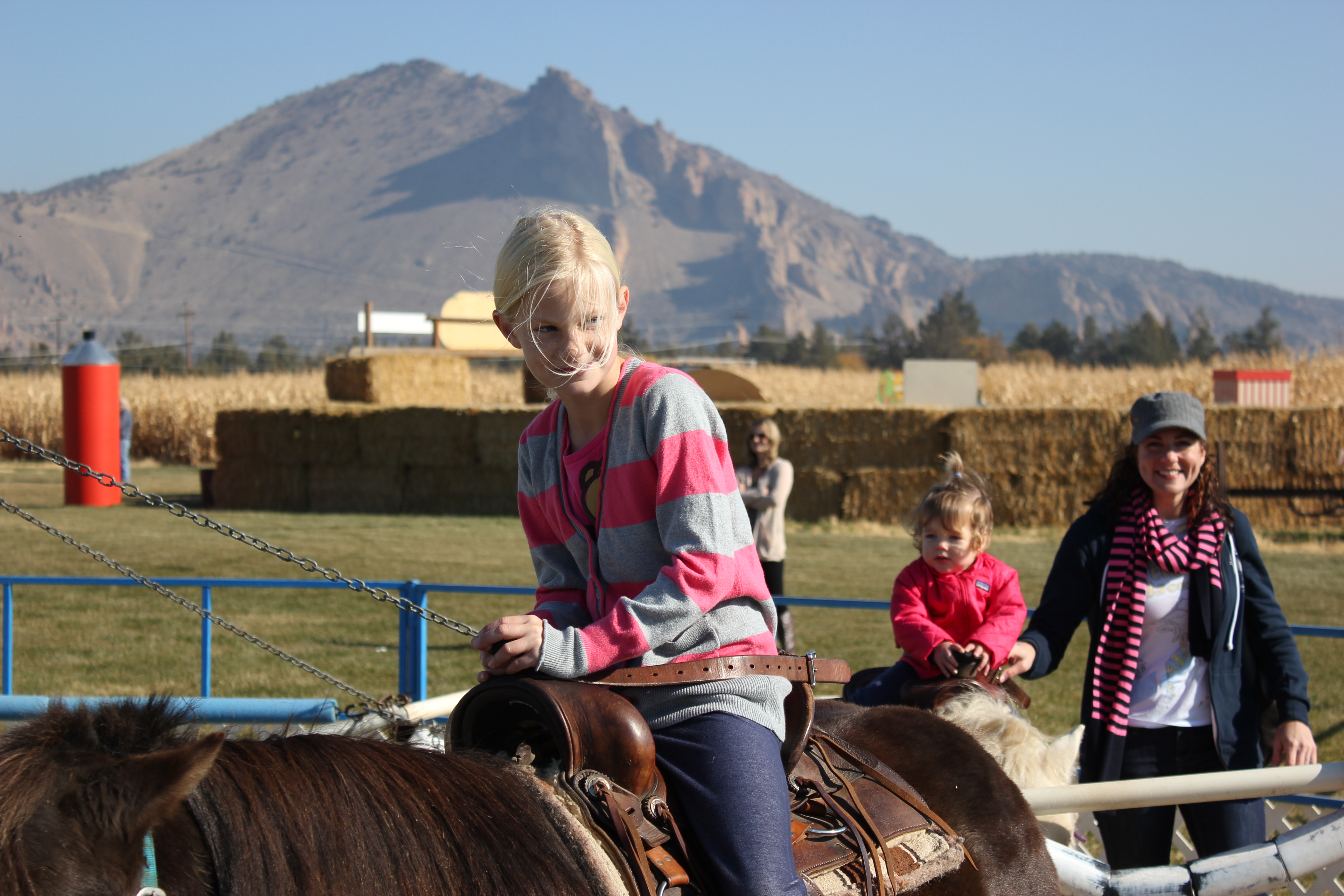 A new family tradition began this year! Our family, my parents, F.A. & U.G. all congregated in Bend to visit the Zink Family (my brother, Nicky, Katelyn & Colton) and to enjoy a stunning fall day at the Pumpkin Patch. Alaire rode her first pony! In fact, when the ponies stopped, Alaire signed and said “more!,” and then had a small tantrum when I pulled her off the pony. Fun to see she felt absolutely no fear about the new experience.